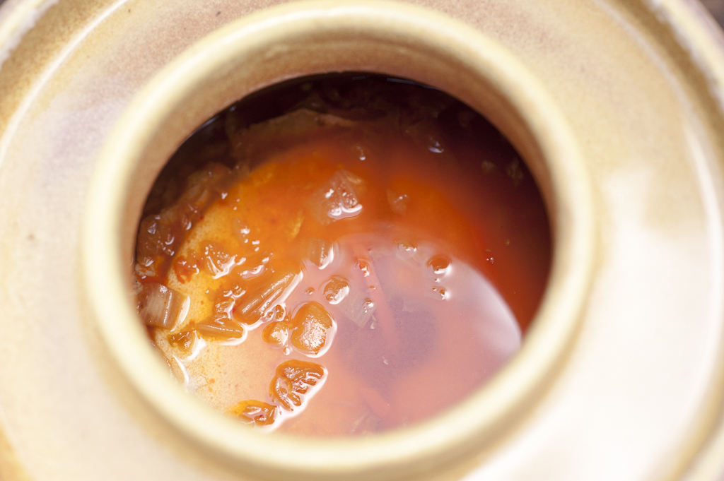 Let op, de hoeveelheid zout is erg belangrijk, heb je minder kool en andere ingrediënten of juist meer gewicht, corrigeer hier dan voor!